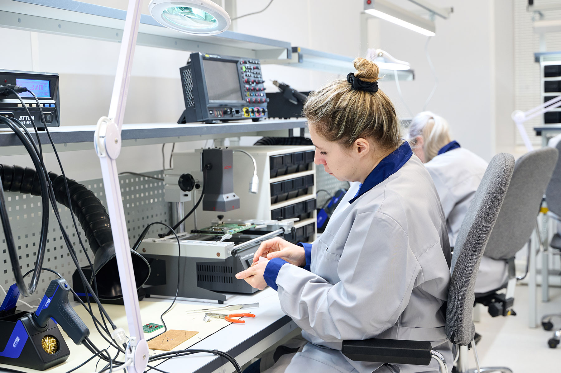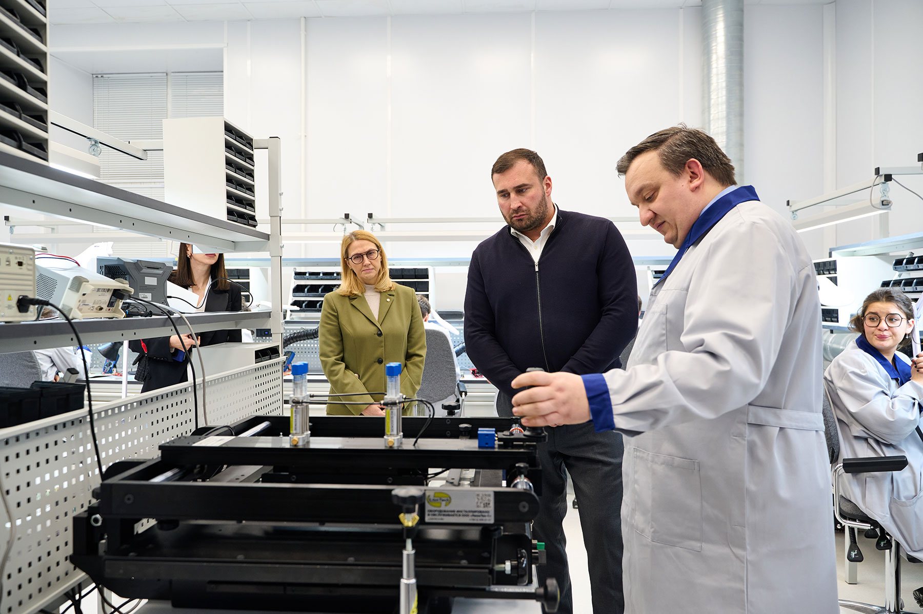 Также Михаил Пантелеев и Владимир Бродский посетили лаборатории ПИШ, новое специальное образовательное пространство «Центр монтажа радиоэлектронной аппаратуры» и пообщались с учеными. В новом Центре студенты в рамках образовательной и научно-исследовательской деятельности смогут создавать прототипы и опытные образцы микроэлектронных устройств.