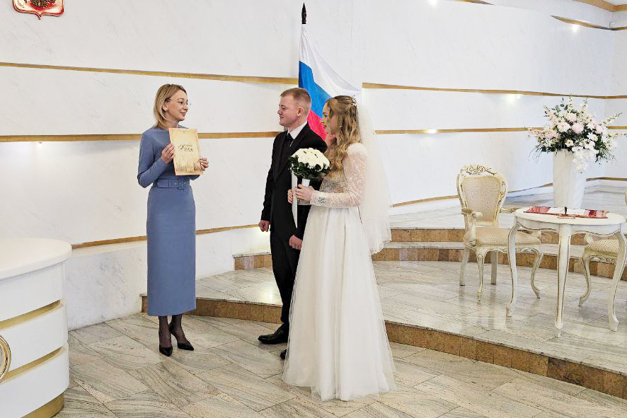 Молодожёнов от имени Губернатора Тульской области Дмитрия Миляева поздравила заместитель Губернатора Тульской области Наталья Архипова. Она вручила супругам свидетельство о заключении брака, памятный подарок и «Летопись семьи», поздравив их с началом семейной жизни.
