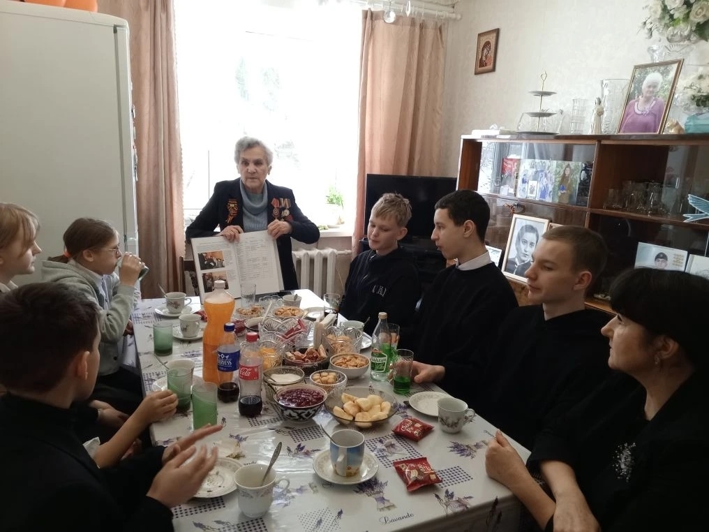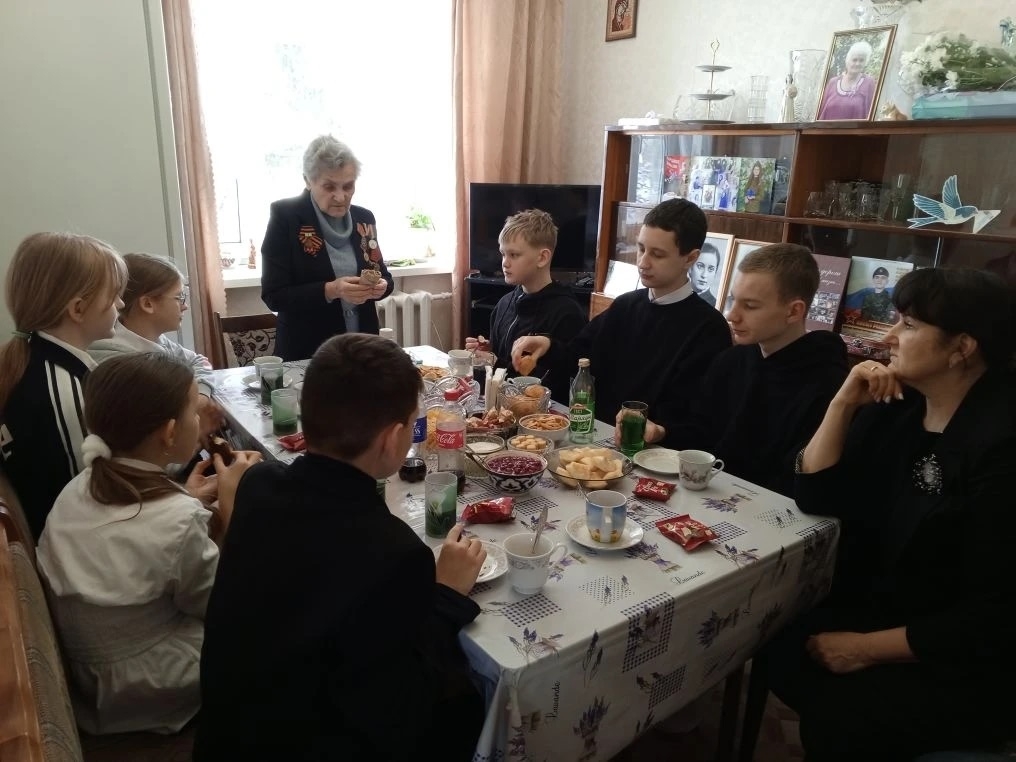 Луиза Борисовна активная и жизнерадостная, принимала гостей. Ни одна памятная дата в ее доме не обходится без друзей и ароматного чая с пирогами. Пригласила гостей к столу попить чаю. За тихой спокойной беседой она поделилась воспоминаниями о военных годах: рассказала о трудностях жизни в блокадном городе, о взаимопомощи соседей, о том, как люди сохраняли надежду в самые тяжёлые времена. Охотно делилась своими воспоминаниями из жизни. Участники с большим вниманием слушали её рассказ, задавали вопросы.