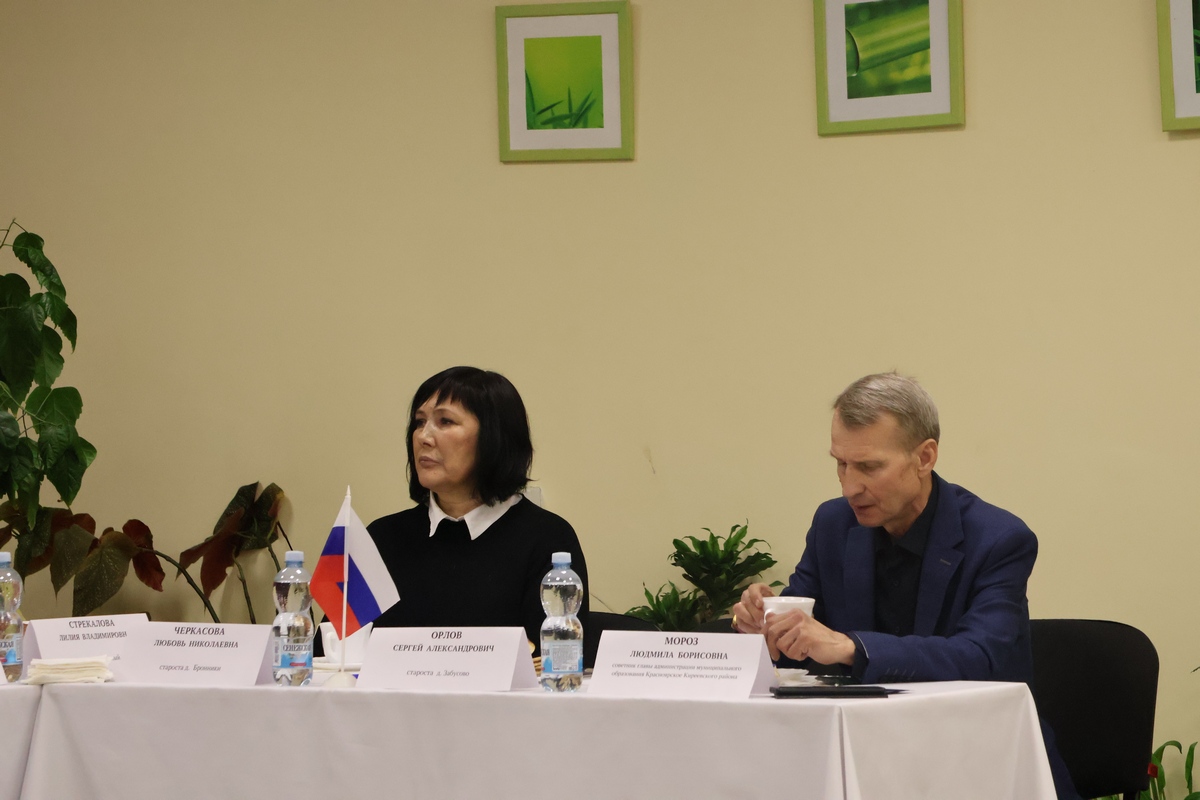 В тёплой атмосфере на разговор собрались восемь сельских старост населённых пунктов МО, глава администрации МО Красноярское Олег Трещилин, глава районной администрации Владислав Галкин и председатель комитета по взаимодействию с органами местного самоуправления и организационной работе Виктория Михайлова.