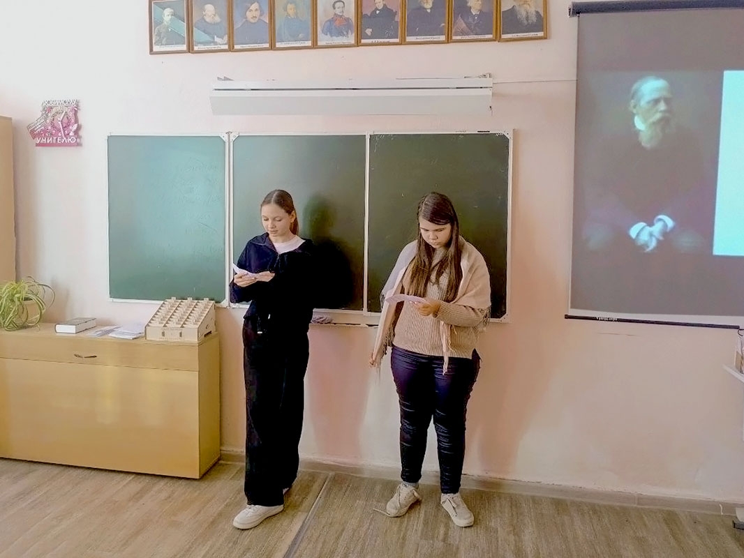 Восьмиклассники узнали о становлении Салтыкова-Щедрина как писателя, о его произведениях, участвовали в инсценировке одной из повестей, помогали проводить мероприятие в качестве ведущих, читали об авторе стихи.