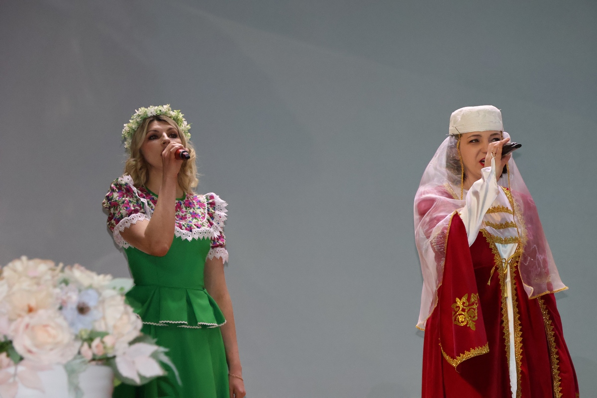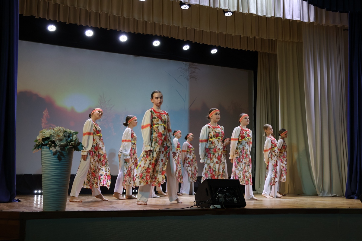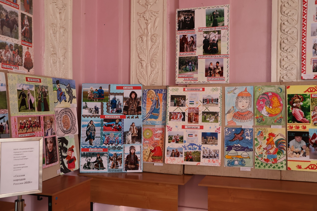 Добавим, что в фойе ДК перед концертом можно было взглянуть на выставку детских рисунков «Сказки народов России — 2026» от народной школы‑студии «Традиция» и фотовыставку костюмов народов России.