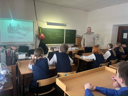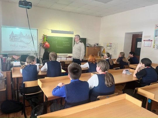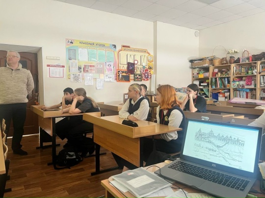 В начале занятия была организована викторина по жизни и занятиям вятичей. Затем в увлекательной форме Алексей Геннадьевич рассказал о возникновении древнего города, о его роли в защите древних поселений, а также в более поздний период истории нашей страны.