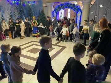 Очаровательный Бабки-Ёжки закружили юных липковчан в новогоднем хороводе
