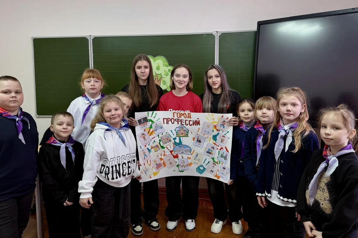 В рамках реализации Всероссийской акции «Шаг в студенчество» и национального проекта «Молодёжь и дети» активисты первичного отделения Движения Первых Октябрьского ЦО вместе с учениками 2 класса-го создали проект «Город профессионалов».