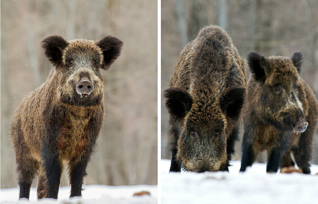 Нагулявшие вес за лето и осень подросшие кабанчики попали в объектив фотоаппарата Виталия Горшкова. Он заснял диких поросят на границе Тульской и Калужской областей.