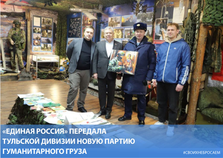 По поручению Губернатора Тульской области региональное отделение партии «Единая Россия» передало очередную партию гуманитарной помощи в Тульскую воздушно-десантную дивизию. В ее рядах служат немало парней, подписавших контракт с Министерством обороны РФ.