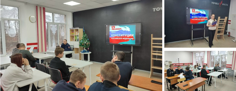 Сотрудники Бородинского дома культуры вместе с оперативным дежурным Дежурной части ОМВД России по Киреевскому району Владиславом Александровичем Сафоновым для учащихся школы провели познавательное мероприятие - правовой обзор "Конституция - закон, по которому мы живем".