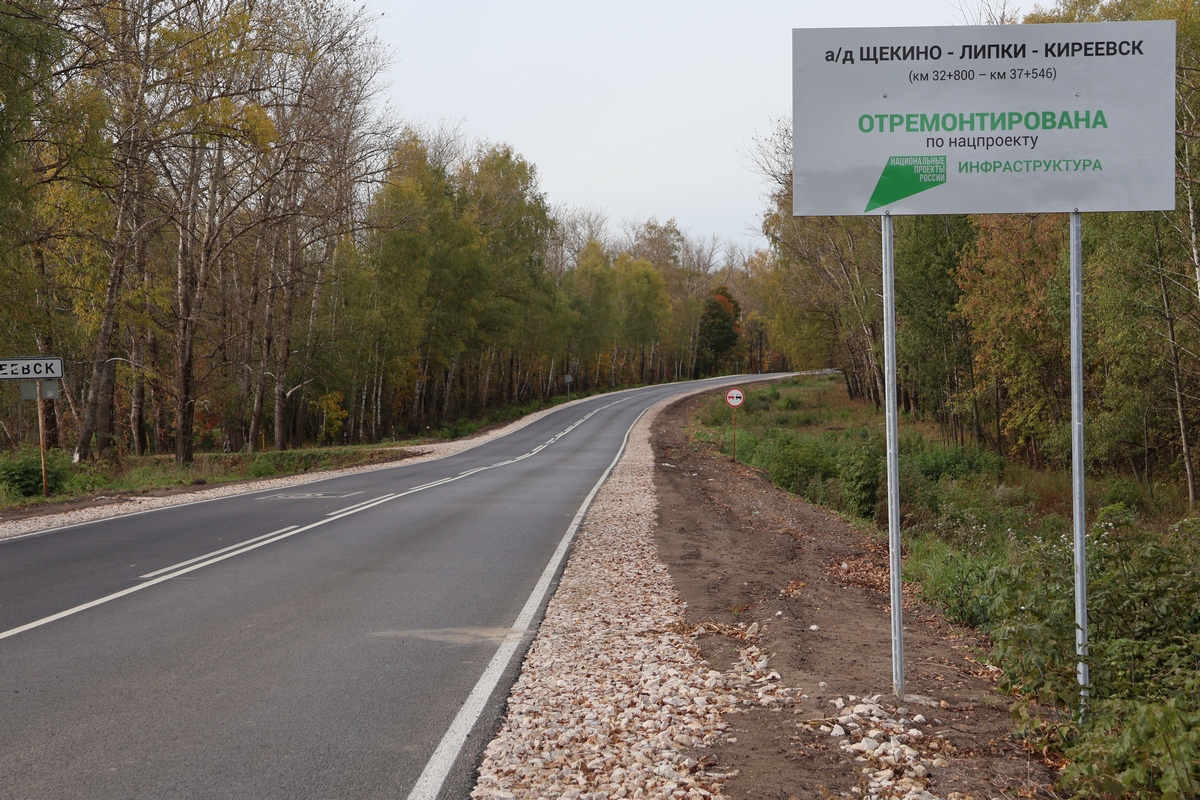 Четыре километра автодороги «Щёкино - Липки - Киреевск» от районного центра были отремонтированы в рамках программы БКД – «Безопасные и качественные дороги».