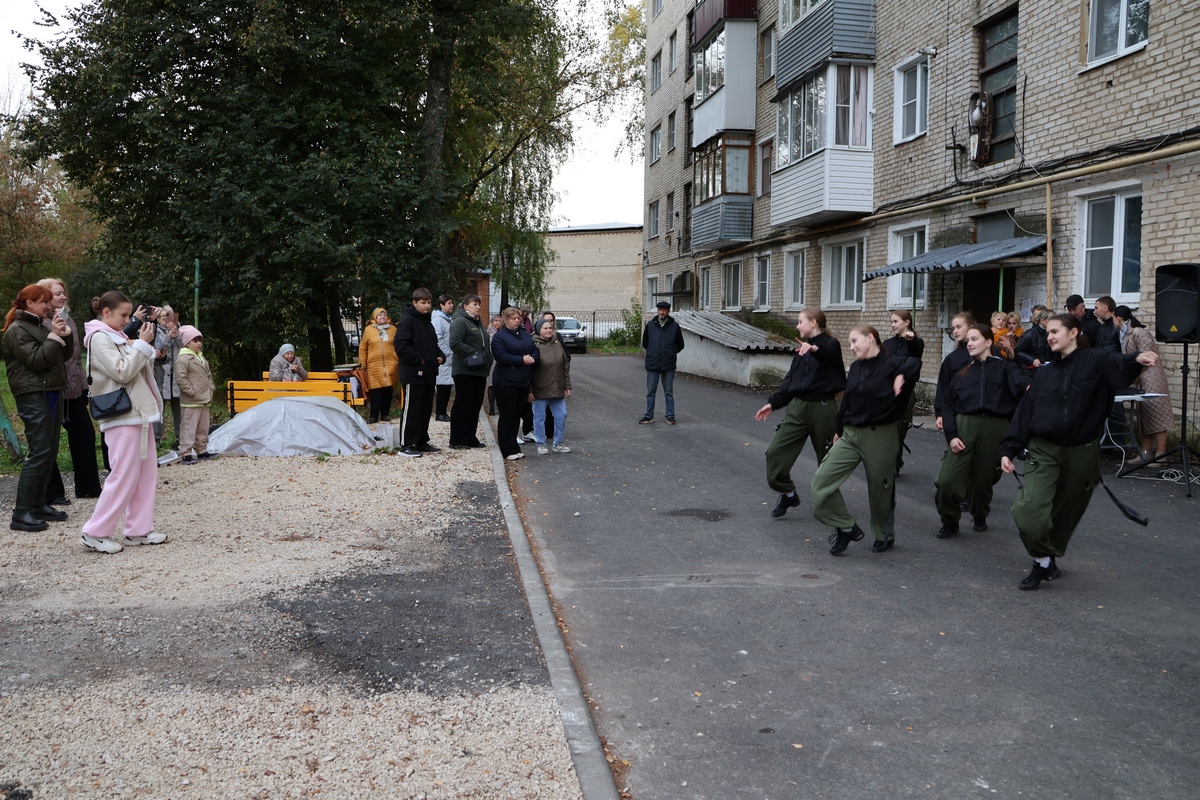 Во дворе дома номер 26 на улице Толстого в рамках программы ФКГС произведена замена асфальтного покрытия, сформированы парковочные карманы, установлены лавочки и урны.