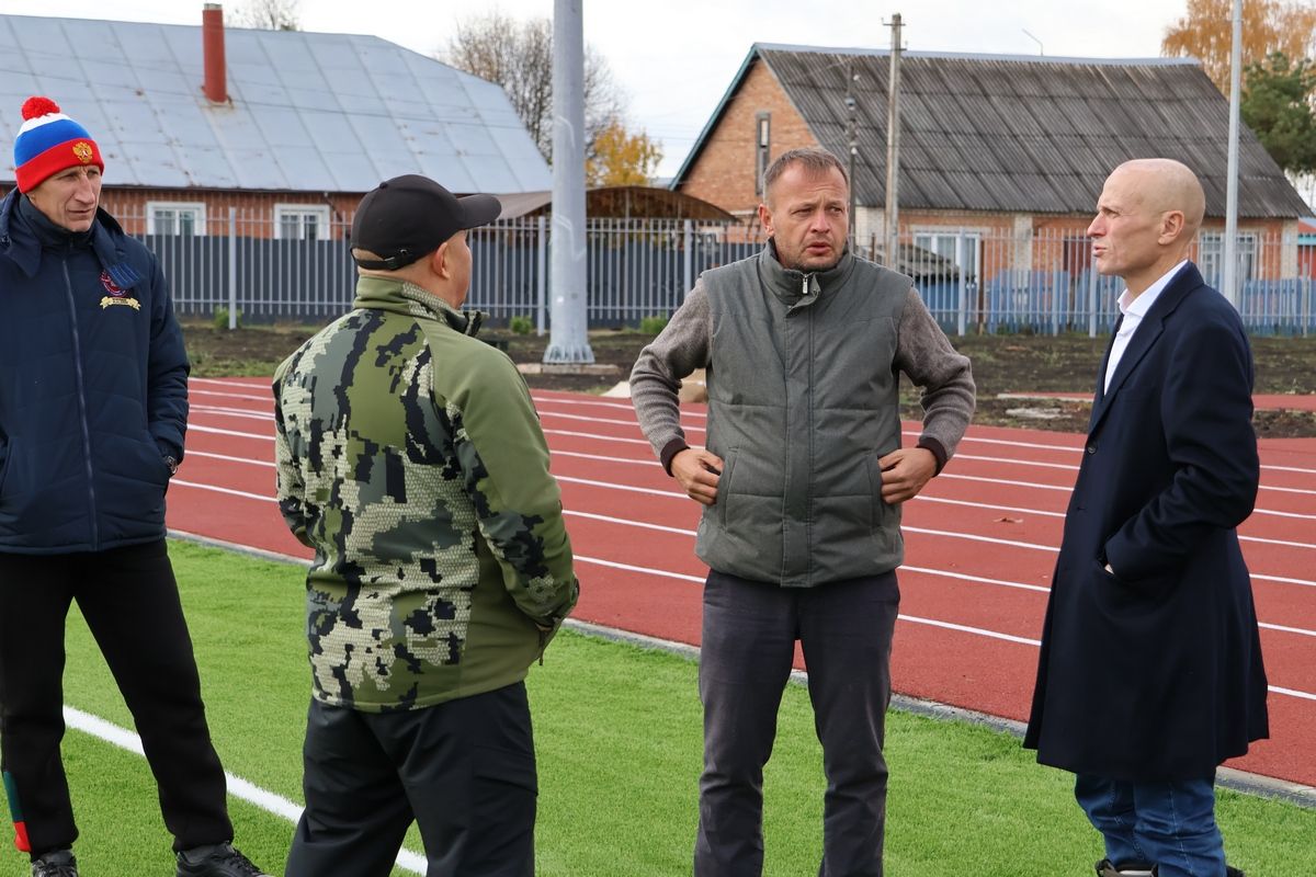 На строящемся Киреевском стадионе «Юность» прошло очередное совещание, которое провёл глава администрации Владислав Галкин с подрядчиком, выполняющим работы.