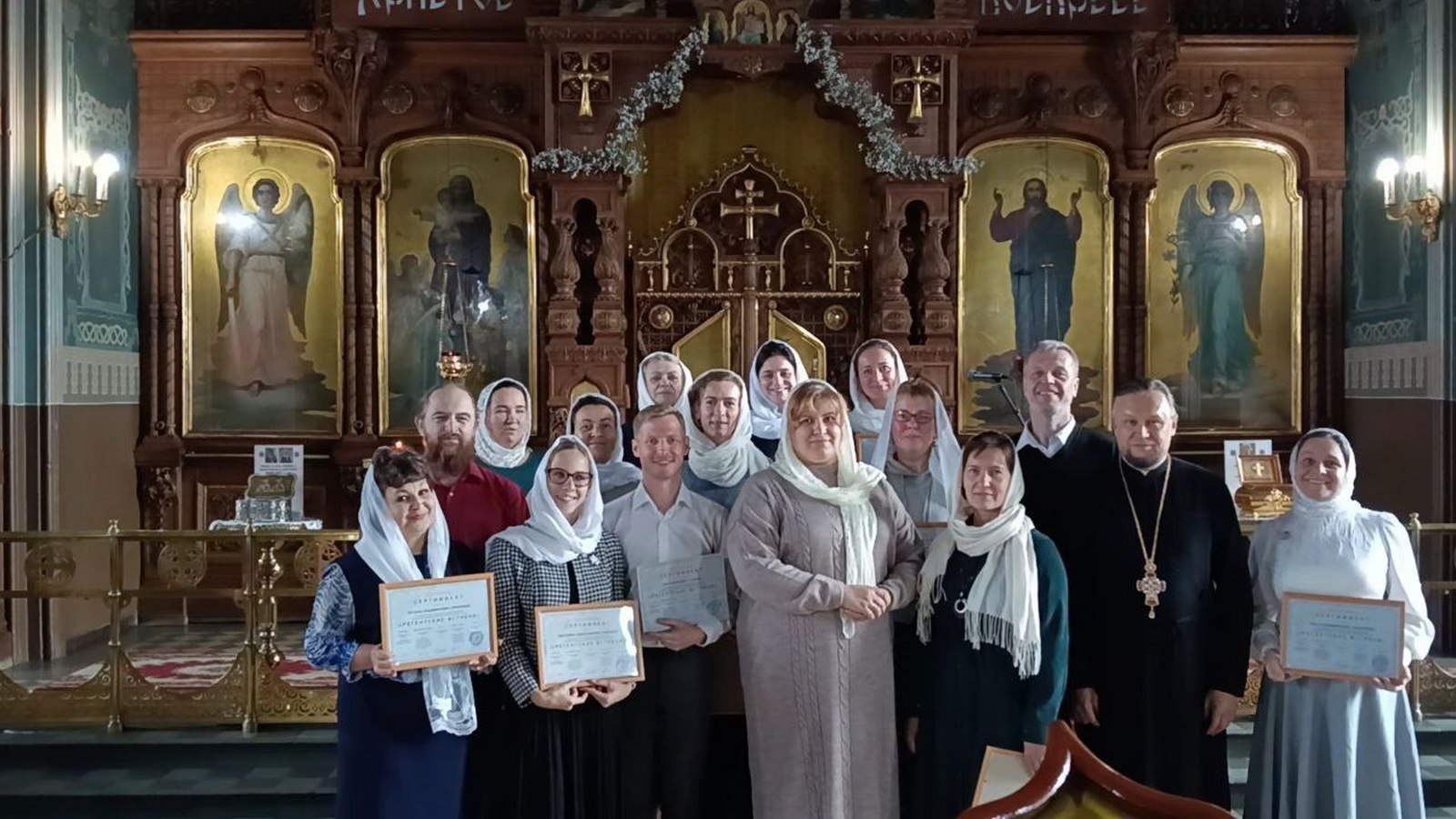По окончании Божественной литургии в Свято-Успенском храме состоялось торжественное вручение сертификатов участникам образовательного курса. Отец Сергий Берёзкин поздравил всех регентов и певчих с успешным окончанием учебы и пожелал помощи Божией в благом деле церковного пения.