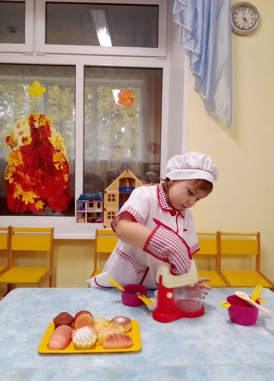 Но ребенку мало знать о профессии, в неё надо поиграть, т.к. в ходе игры дошкольники начинают отображать содержание деятельности повара.