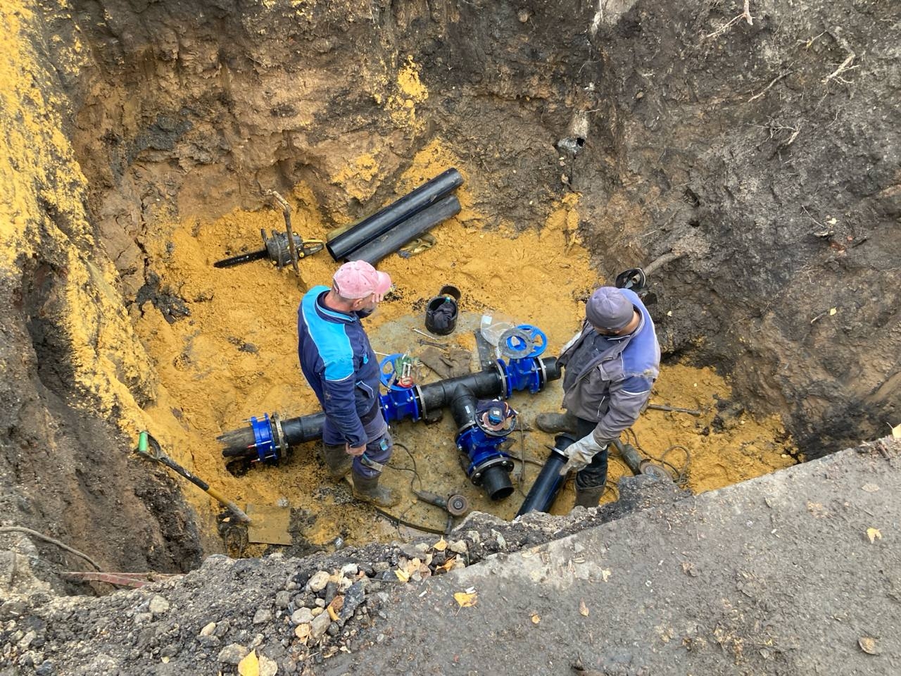 Сегодня подрядная организация ООО «Поволжский строительный комбинат № 1» выполняет замену запорной арматуры и водопроводных сетей в районе улицы Л.Толстого.