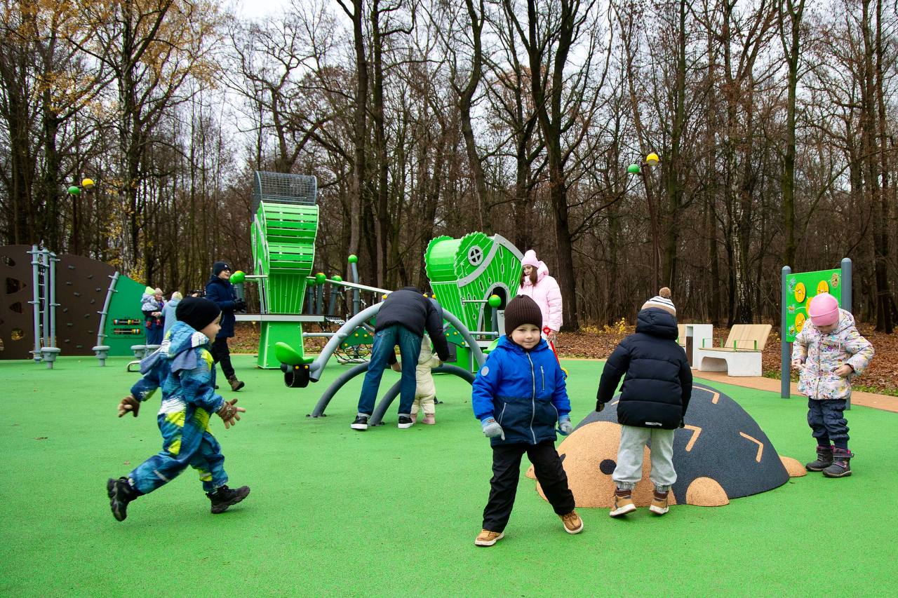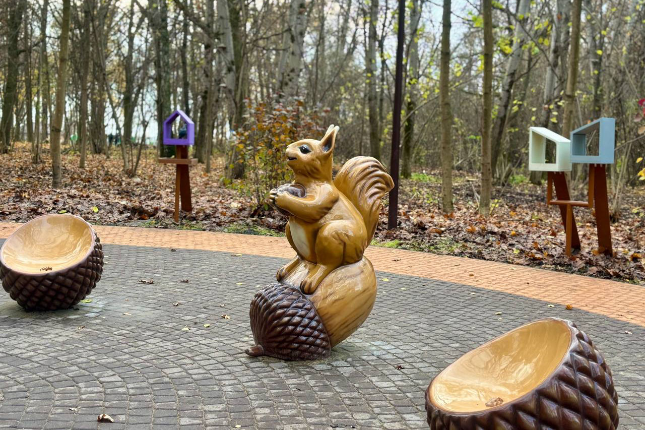 Также обустроена спортивная зона с тренажерами, памп-трек, сцена, площадка для выгула собак, арт-объекты в лесной тематике. В парке появились образовательные стоянки с информацией о растениях леса и его обитателях, новые кормушки для белок и птиц.