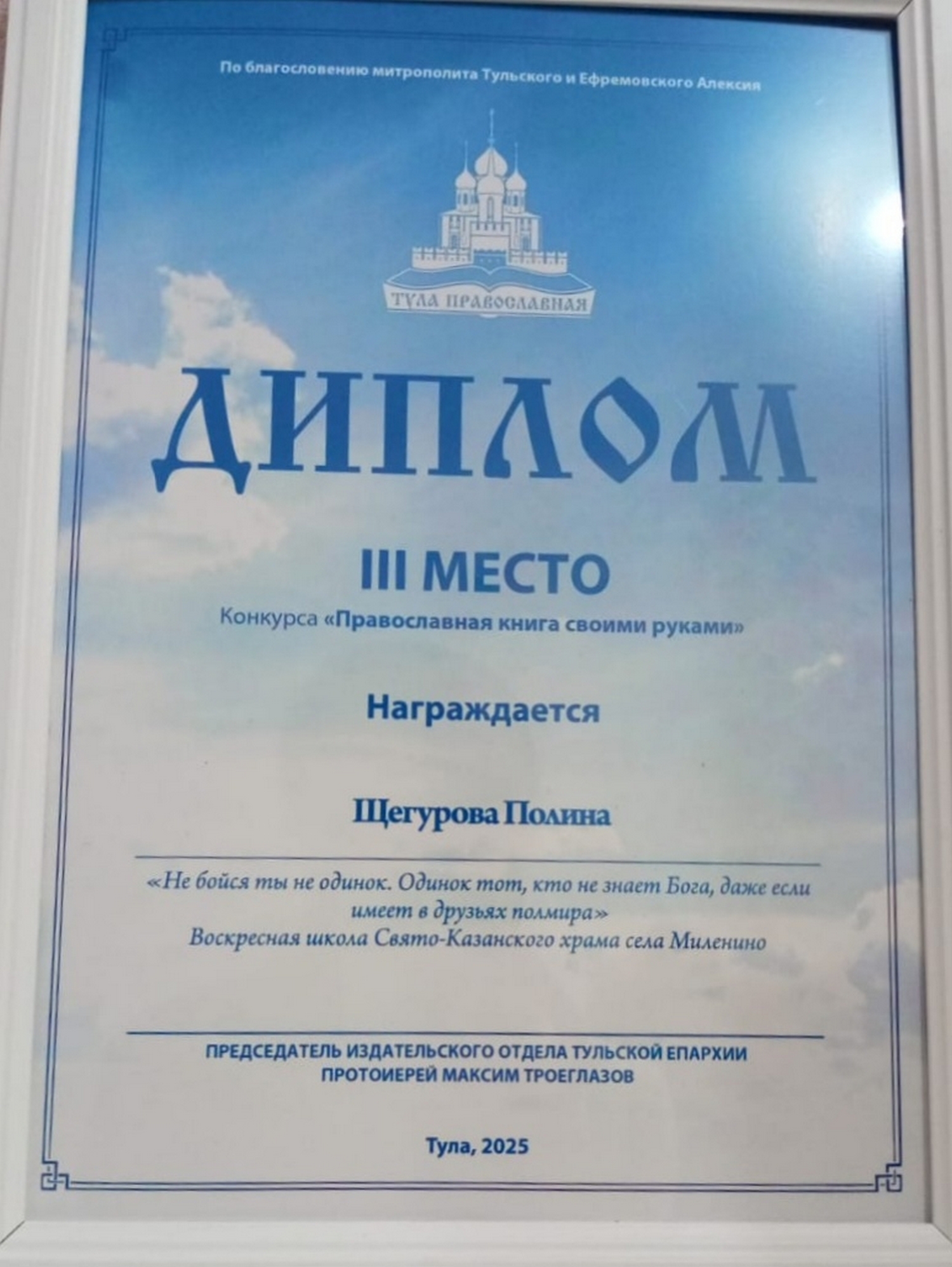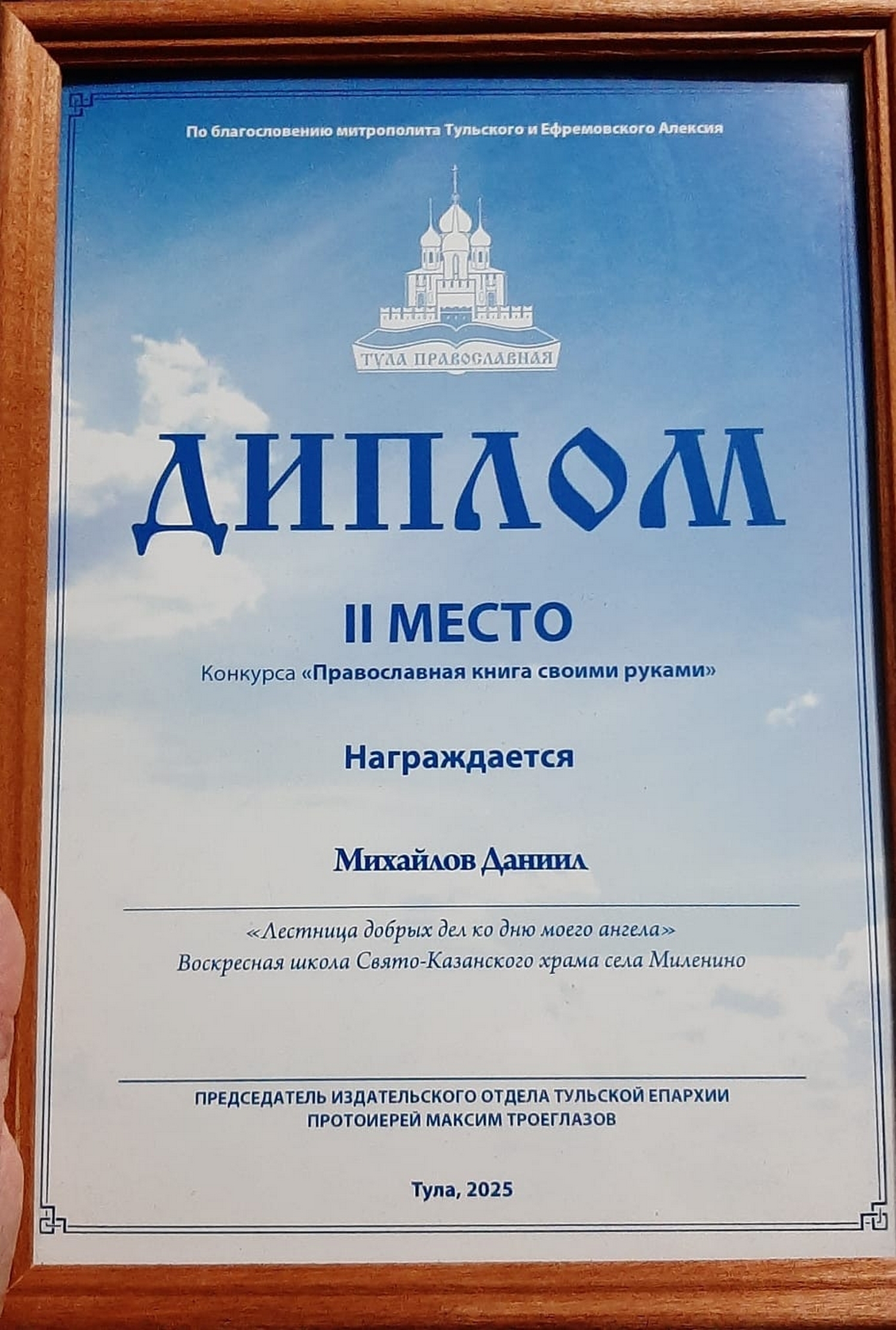 Настоятель Казанского храма иерей Димитрий Броновицкийпоздравил ребят с отличными результатами работы над созданием православных книг. Батюшка пожелал воспитанникам воскресной школы дальнейших творческих успехов в благих начинаниях.