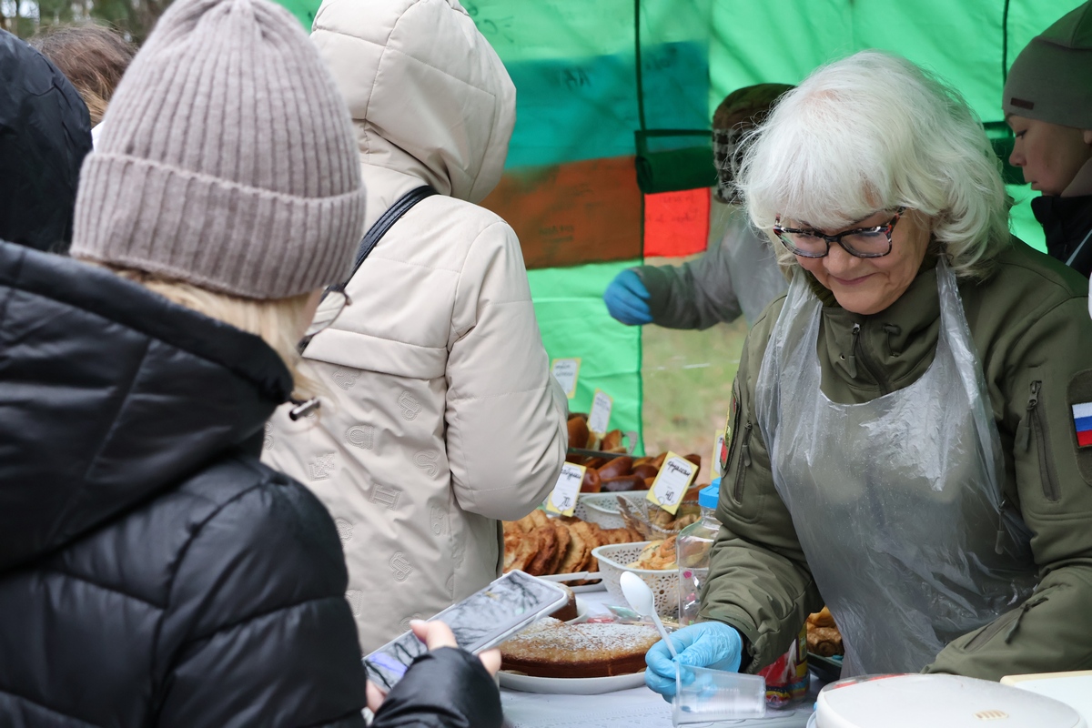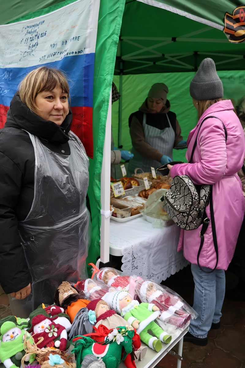 Также все присутствующие могли выпить горячего чаю с ароматной выпечкой, приготовленной волонтёрами пункта поддержки воинов «Отчизна» из города Липки. Все сувениры и сладости, созданные руками добровольцев, нашли своих покупателей, а собранные средства будут направлены на помощь бойцам, участвующим в СВО.