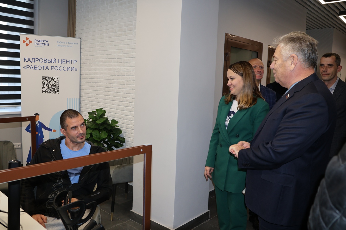 Второй «остановкой» сенатора в Киреевске стал открывшийся совсем недавно районный филиал центра «Герой 71». Экскурсию по так называемому офису Николаю Воробьеву провела руководитель центра «Герой 71» Елена Шмелёва. Николай Юрьевич лично поприветствовал участника специальной военной операции, который пришёл за консультацией. Сенатор отметил, что открытие такого центра в районе – своевременный и важный шаг к успешной адаптации вернувшихся «из-за ленточки» участников специальной военной операции.