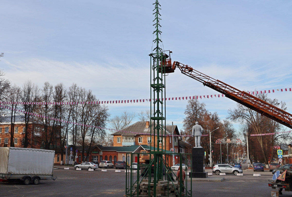 «Маяк» уже писал ранее, что в Киреевске началась установка новогодней ели. Главная красавица города появится на площади благодаря специалистам МКУ «Городское хозяйство».