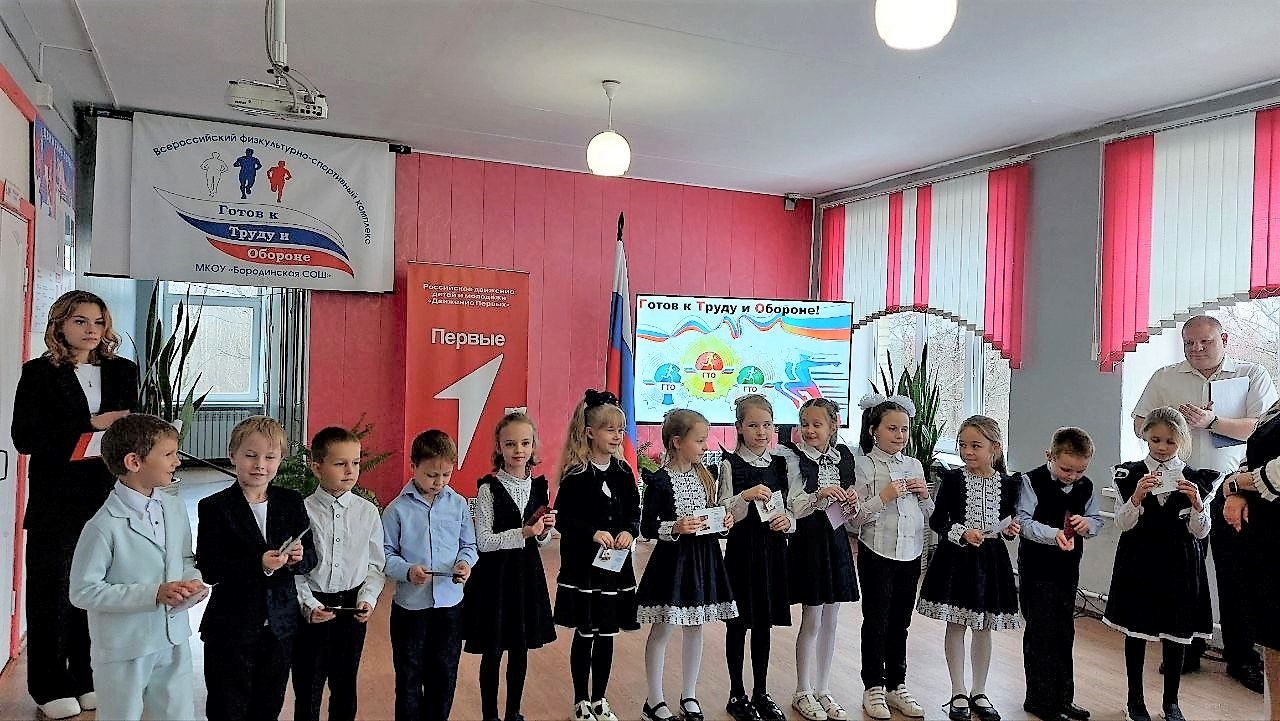 В рамках национального проекта «Молодёжь и дети» и программы «Спорт России» в Бородинской средней школе произошло знаменательное событие - торжественное вручение золотых знаков отличия Всероссийского физкультурно-спортивного комплекса «Готов к труду и обороне»!
