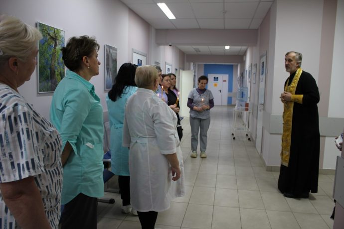 Обращаясь к медицинским работникам, батюшка поблагодарил их за усердное служение на благо своих пациентов.