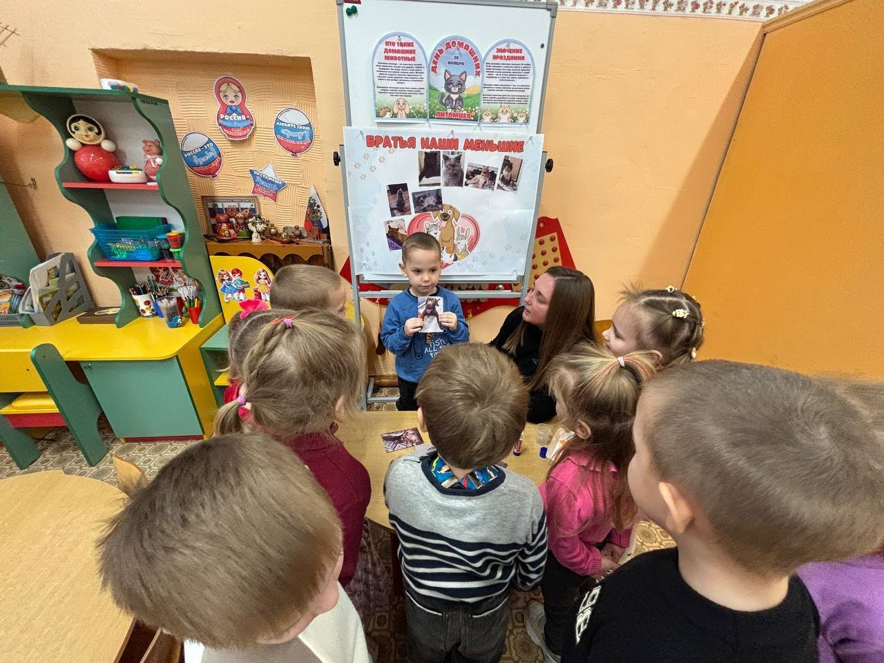 Оказалось, что почти у всех воспитанников есть домашние животные. Ребята с большим увлечением рассказывали о своих маленьких друзьях, какие они милые и красивые, описывали внешний вид и повадки своих любимцев, во что любят играть, чем питаются, какой характер у животного, что он любит делать и в чём заключается оказываемая ребёнком помощь домашнему питомцу. В итоге мероприятия дети с удовольствием смастерили поделку в знак праздника.