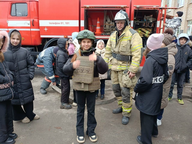 В ходе занятия ребята узнали о правилах поведения при возникновении пожара, познакомились с оборудованием и снаряжением пожарных, а также получили ответы на все интересующие вопросы от опытных спасателей.