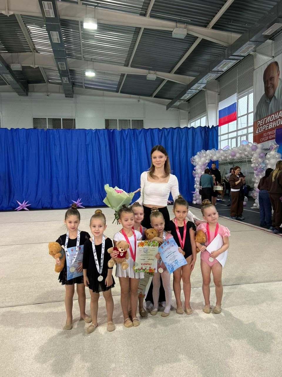 Воспитанницы Инны Юрьевны Самокатовой, очаровав всех своей грацией, легкостью и гибкостью, показали отличные результаты: первое место - Гришина Зоя 2020 г.р., Крамаренко Дарья 2019 г.р., второе - Рябченко Валерия 2020 г.р., Котельникова Ксения 2018 г.р., третье - Коршунова Полина 2020 г.р. и Туриянская Вероника 2018 г.р.