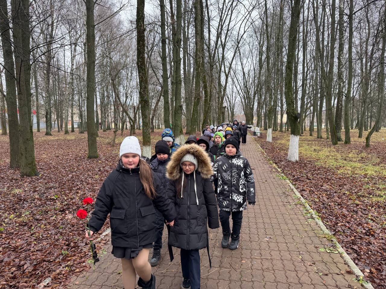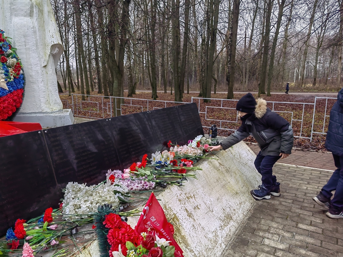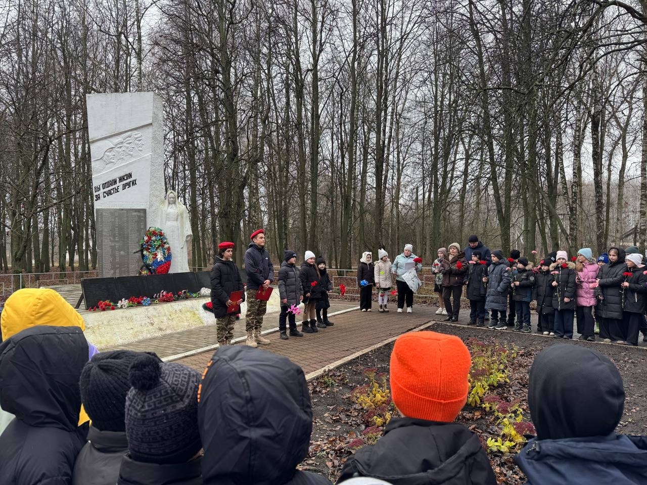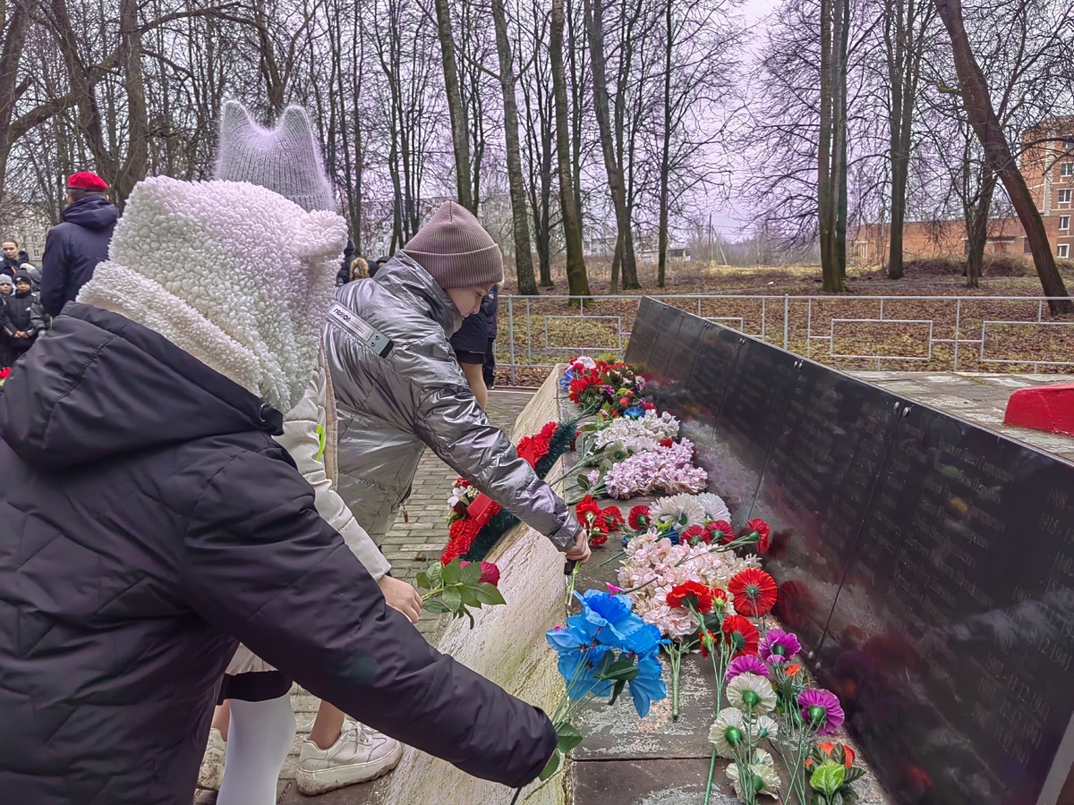 В памятный день ученики Шварцевского центра образования под руководством советника директора по воспитанию Дарьи Шлепиной провели митинг у Братской могилы посёлка.