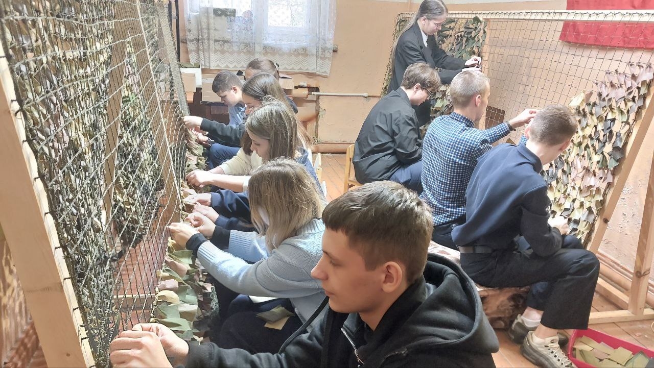 Ученики-волонтёры Бородинской средней школы, проявив инициативу, приняли участие в плетении маскировочных сетей. Таким образом ребята оказали помощь пункту поддержки воинов СВО при поселковом Доме Культуры. Обучающиеся не только плели сети, но и собрали немалое количество гуманитарной помощи, в виде продуктов, медикаментов.