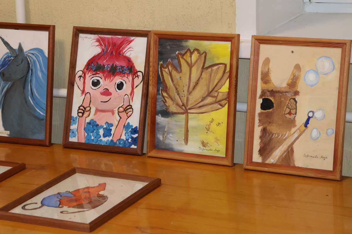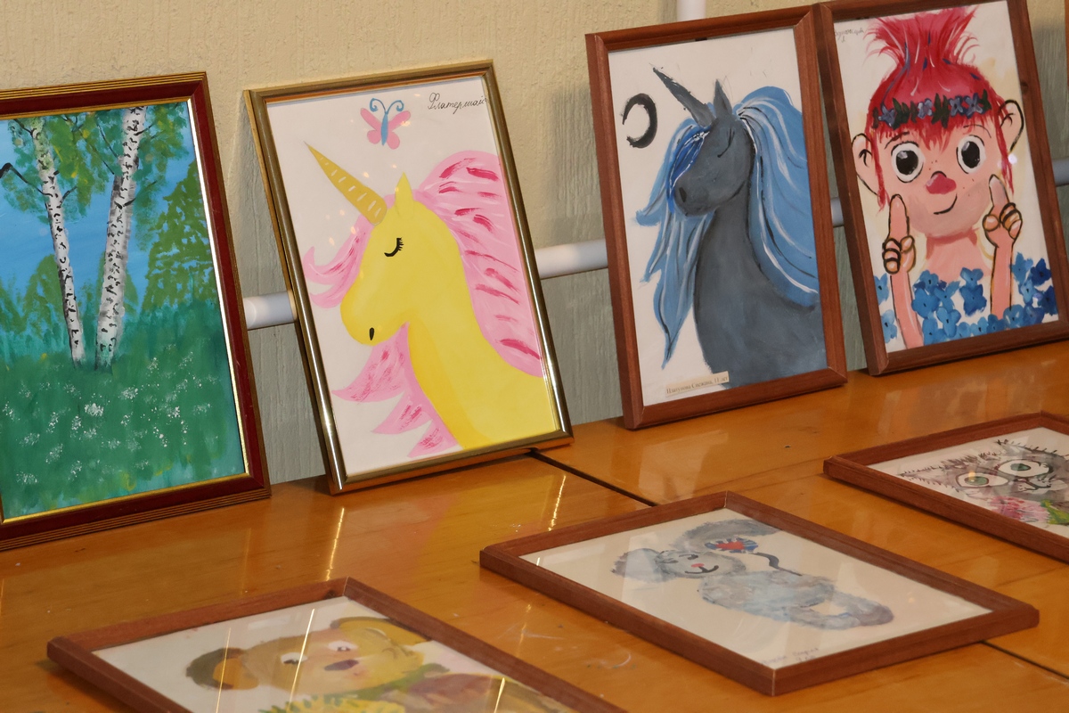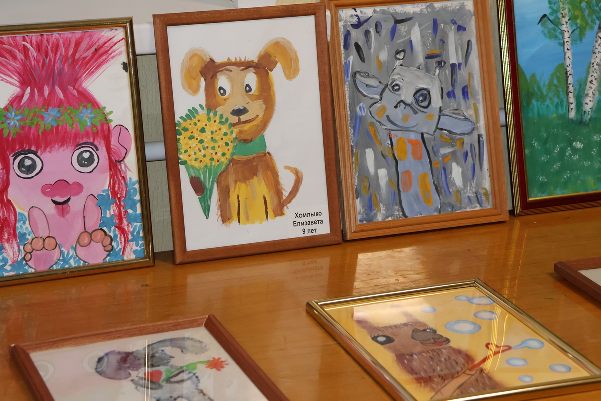 В фойе дома культуры радовала глаз выставка детских работ, которые успели сделать юные воспитанники класса живописи.