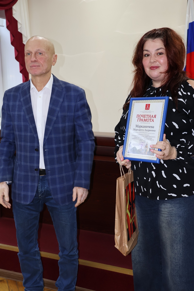Так, почтенной грамотой администрации муниципального образования Киреевский район за победу в конкурсе «Лучший руководитель территориального общественного самоуправления» награждена председатель ТОС № 7 города Киреевска Анастасия Горбачева, за второе место – председатель ТОС №3 МО Шварцевское Людмила Гречнева, за третье место - председатель ТОС № 1 МО Шварцевское Маргарита Марканичева.
