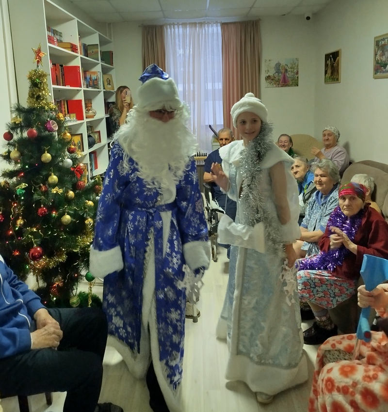 Ребята подготовили концертную программу, чтобы подарить пожилым людям частичку новогоднего волшебства и внимания. Гостями стали Дед Мороз, Снегурочка, Баба Яга. В ярких костюмах и с подобающей атрибутикой они создали настоящую сказочную атмосферу. Ребята не только прибыли с поздравлениями, но и с мешком подарков, в котором теплые вещи, сладкие угощения и море позитива. Гуманитарная помощь пожилым людям также была оказана пунктом поддержки военнослужащих «Zа наших» пос. Бородинский.