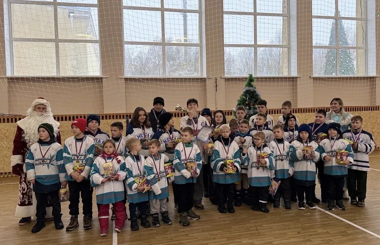 Исполнительный директор Федерации хоккея Тульской области Николай Николаевич Ивашков и глава администрации МО Шварцевское Оксана Фомина поздравили всех с наступающим Новым годом, пожелали удачи и передали клюшки для награждения участников Кубка.