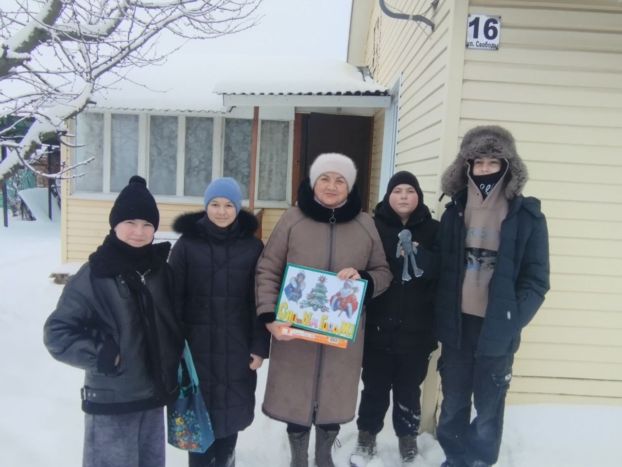Ученики Приупской школы с радостью присоединились к Всероссийской акции «Новый год в каждый дом». Они подарили праздничное настроение тем, кто долгие годы посвящал себя воспитанию юных поколений.