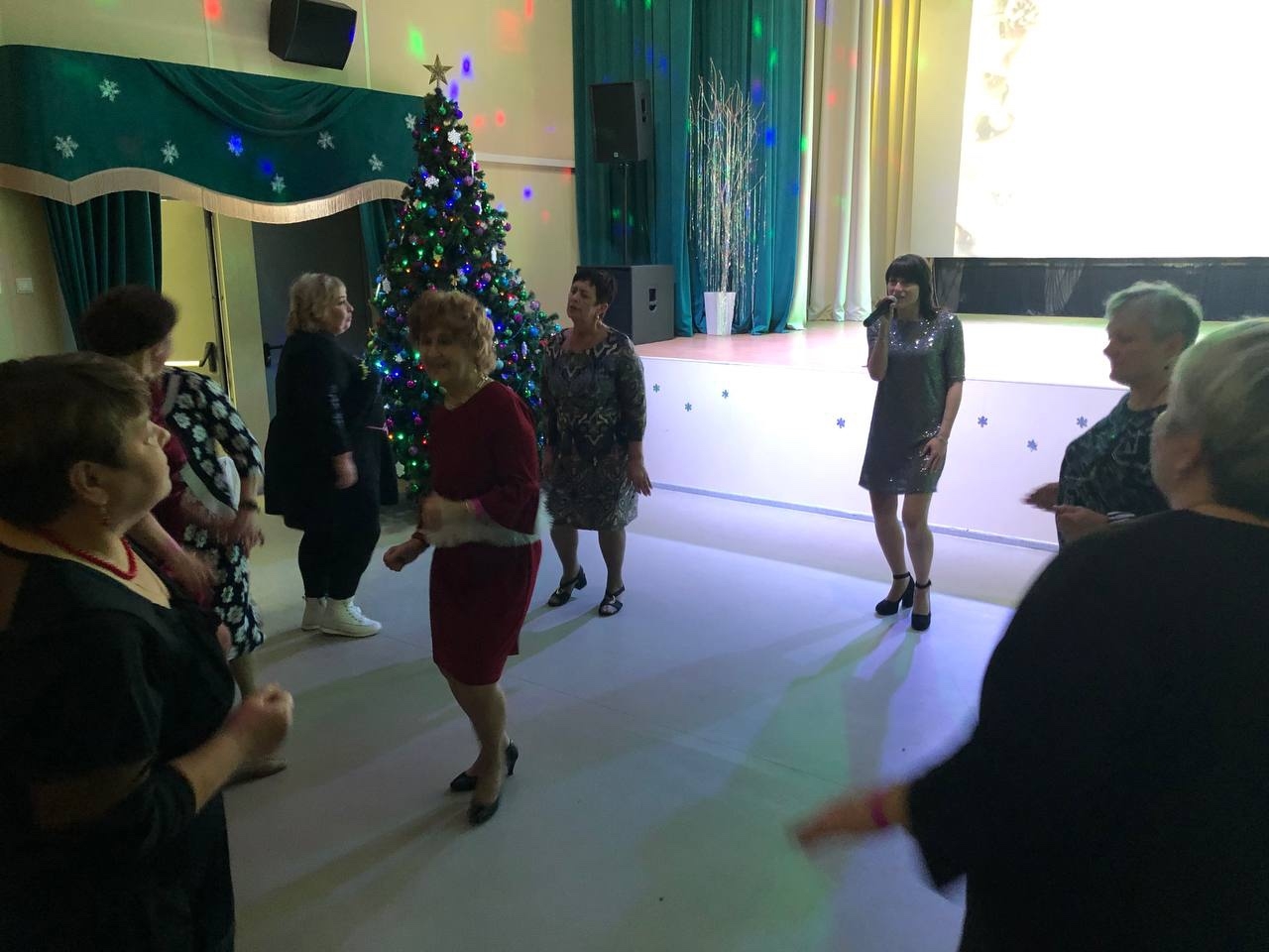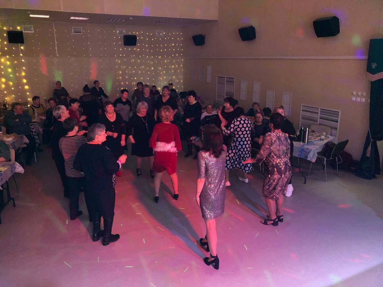 Участники праздника собрались в уютном зале, где за окном бушевала январская вьюга, а внутри царила теплая атмосфера веселья и радости.
