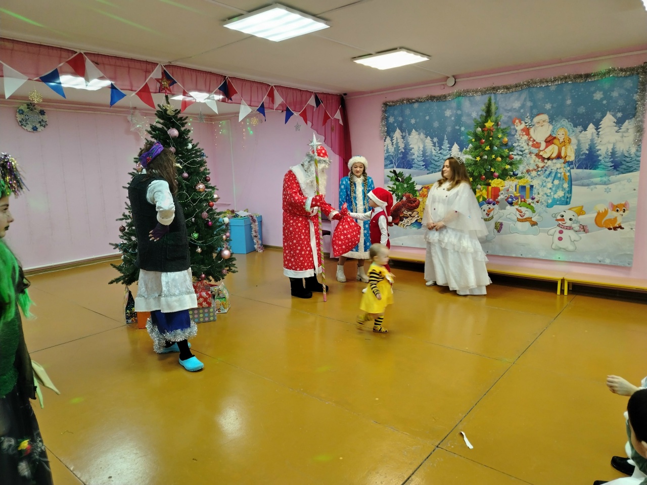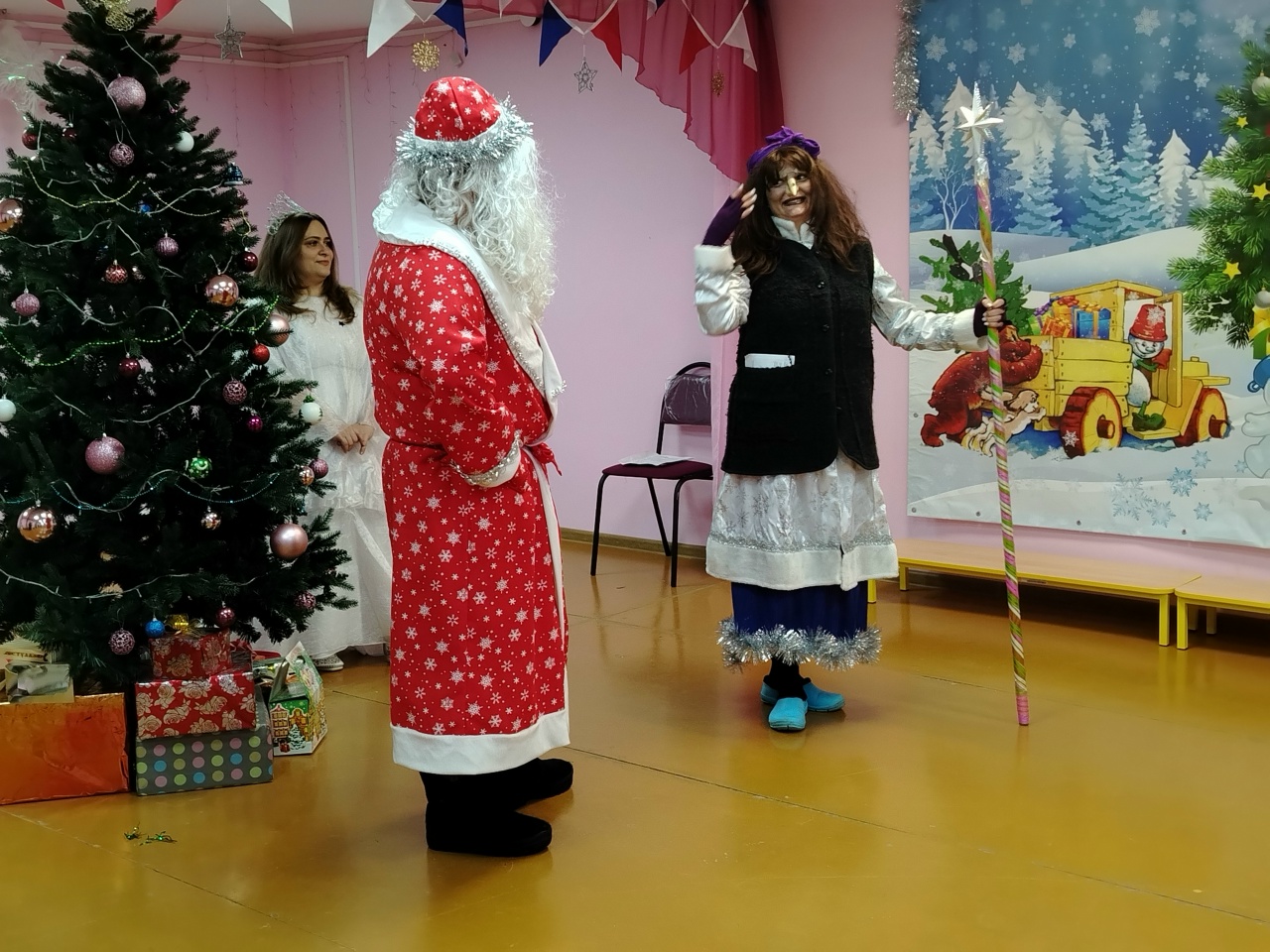 Сказочные герои вовлекли детвору в игры и конкурсы. Песни, танцы и хороводы вокруг ёлки вместе с озорной Бабой Ягой и её помощницами Кикиморами подарили присутствующим радость и восторг.