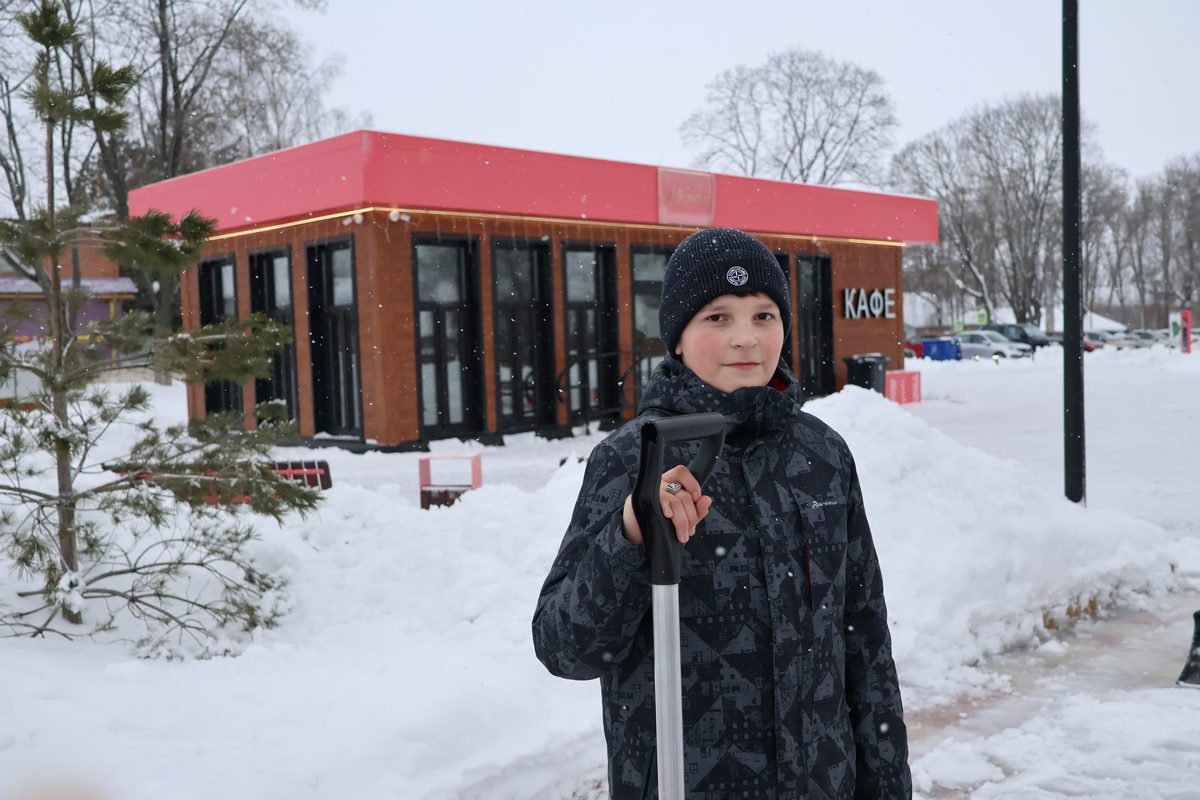 В стороне от борьбы со снегом не осталось и молодое поколение. Вместе со своим папой на расчистку снега в общественное пространство пришли Георгий и Владимир Горяченковы.
