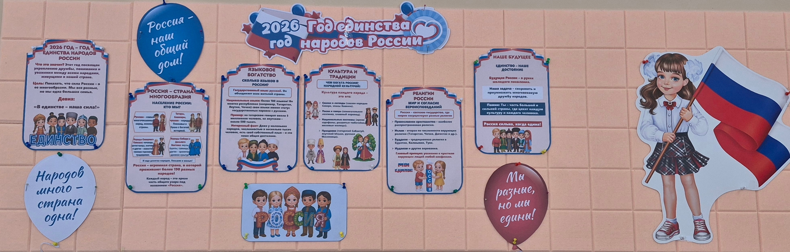 По окончании занятия ученики совместно с классным руководителем оформили классный уголок, посвященный Году единства народов России.