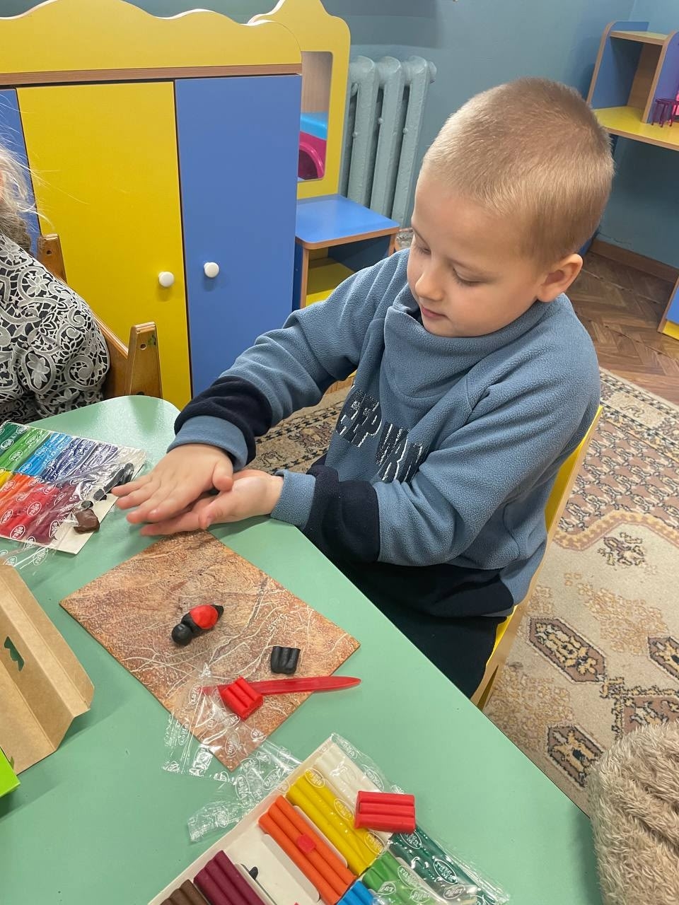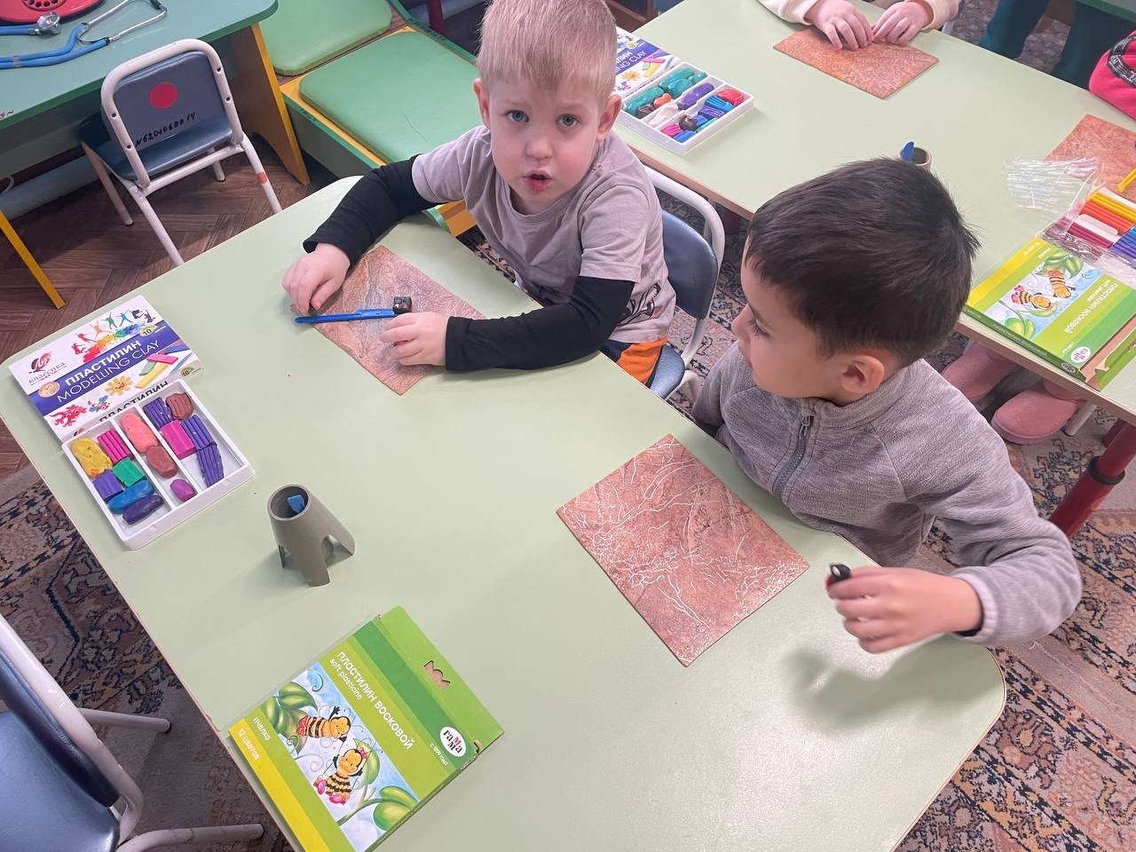 А потом теория превратилась в практику. Вооружившись пластилином, юные скульпторы принялись создавать своих собственных снегирей. Сколько было усердия, фантазии и радости, что получилась целая стая ярких, неповторимых зимних гостей.