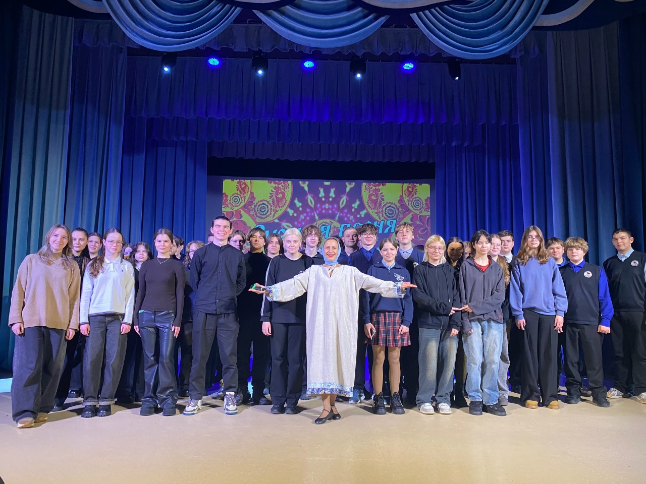 Услышали мощь и красоту народных песен в исполнении профессиональных артистов на сцене.